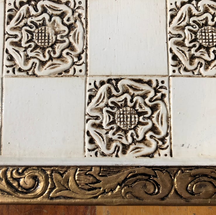 The York Rose design was adopted in the 14th century as an heraldic symbol of the royal House of York which alongside the beautiful flowing engraved border gives this board a deep Gothic yet Renaissance feel and sits very comfortably between the two genres.
