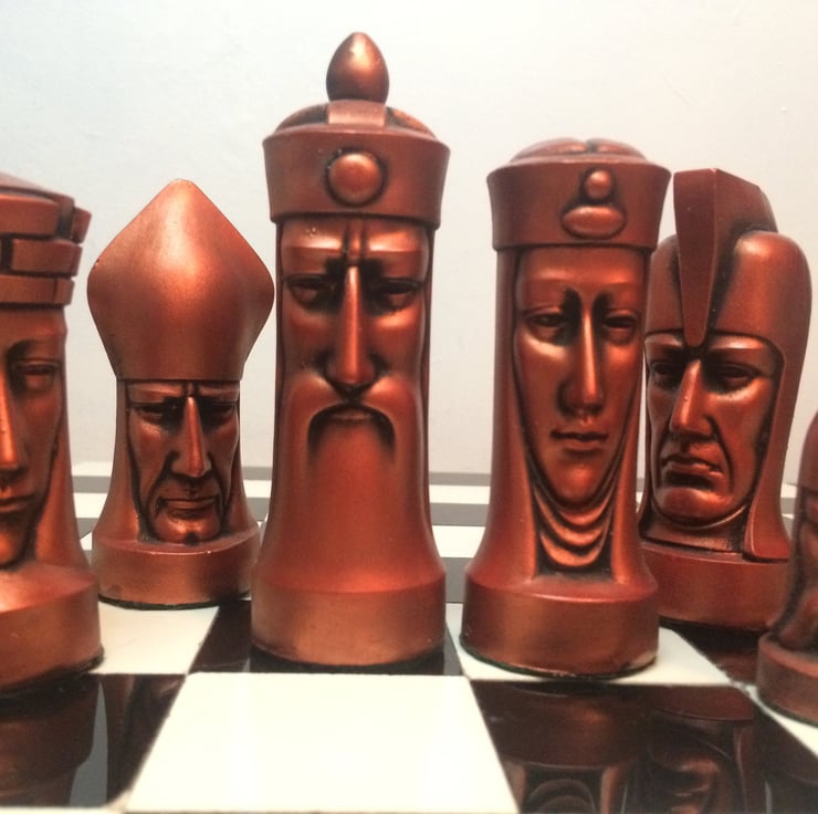 This listing is for a beautiful custom made reproduction set of the "Gothic" chess set designed by the Georgian-Russian-American sculptor Peter Ganine and featured in no less than 3 episodes of the original the greatest 60's Sci Fi series ever made (I'm sure you know it).