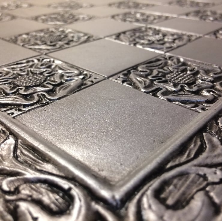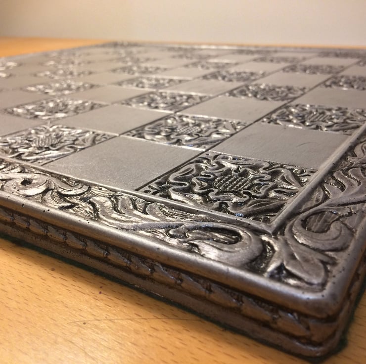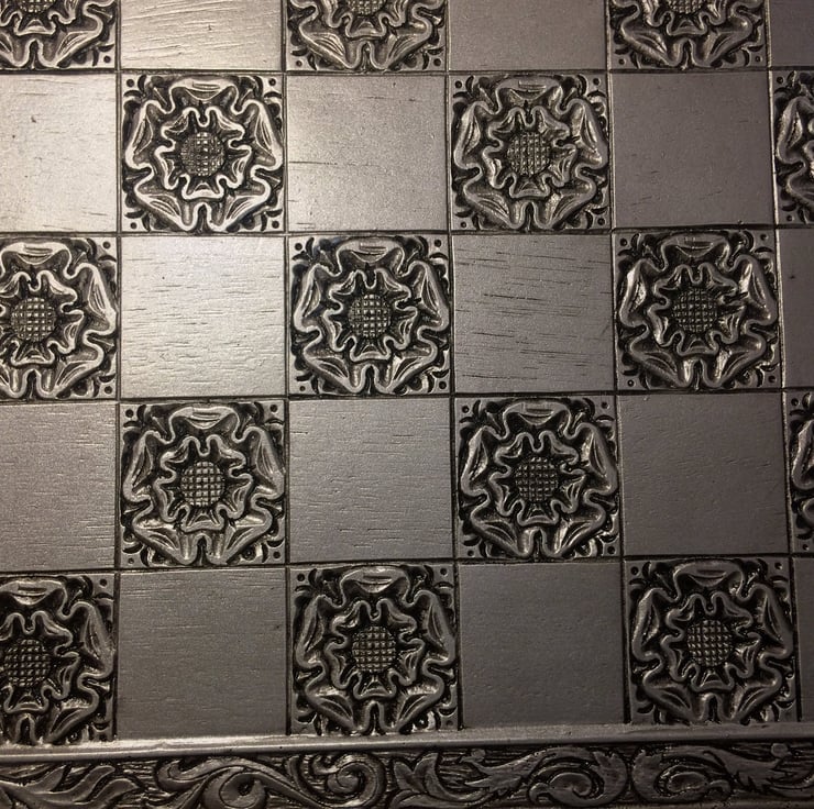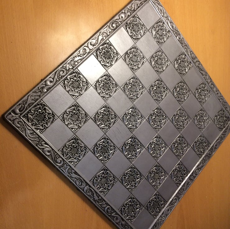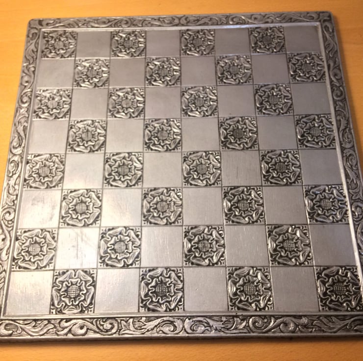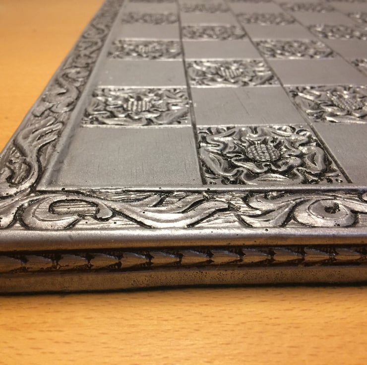 Large Chess board - Metallic Silver York Rose Gothic Motif with Engraved Border