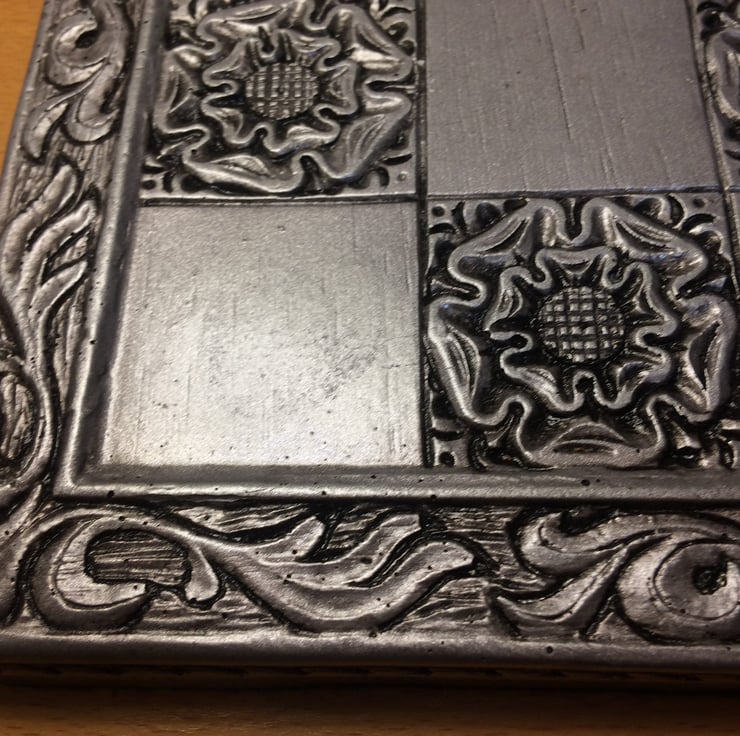 The York Rose design was adopted in the 14th century as an heraldic symbol of the royal House of York which alongside the beautiful flowing engraved border gives this board a deep Gothic yet Renaissance feel and sits very comfortably between the two genres.