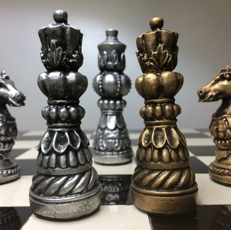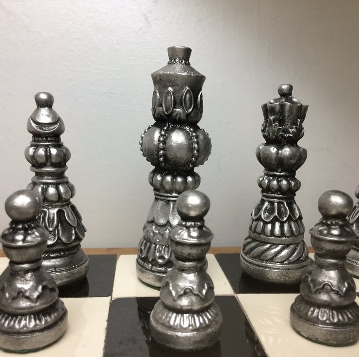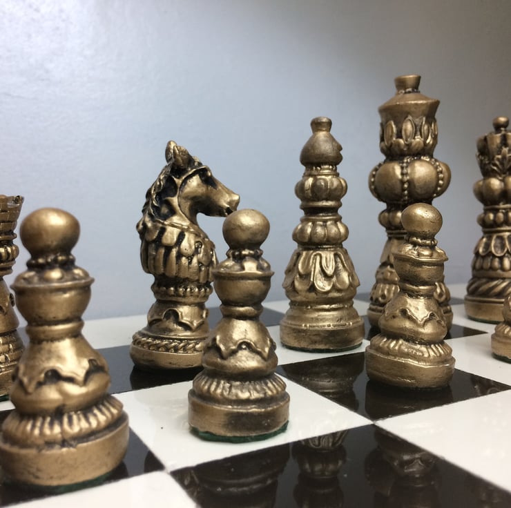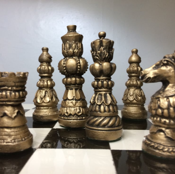 This listing is for a beautiful custom made Baroque styled replica set of highly detailed Staunton themed chess pieces.