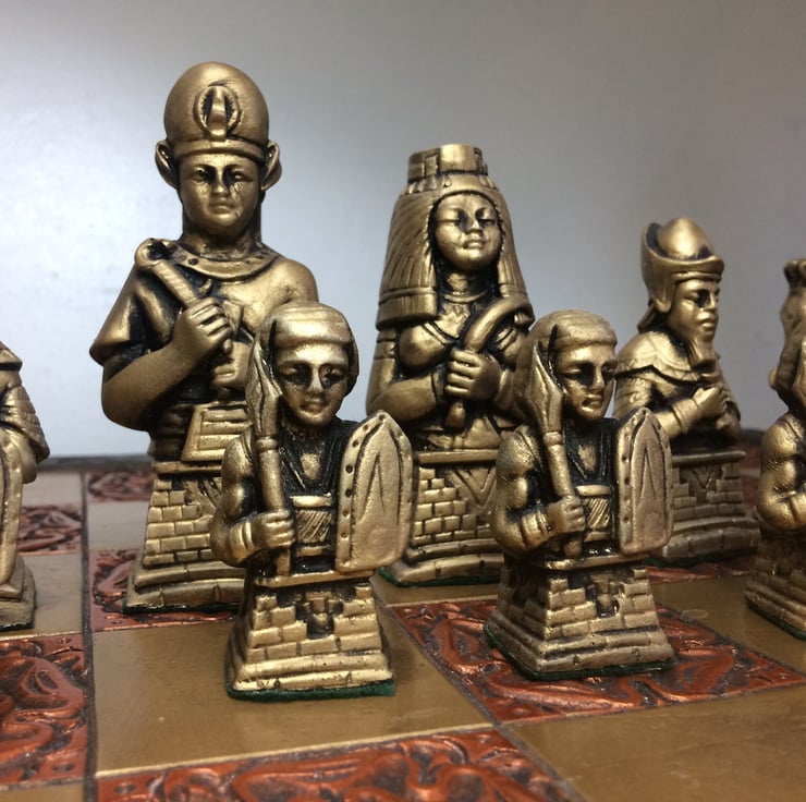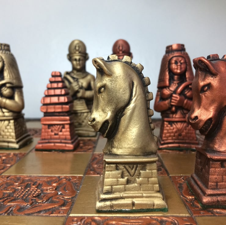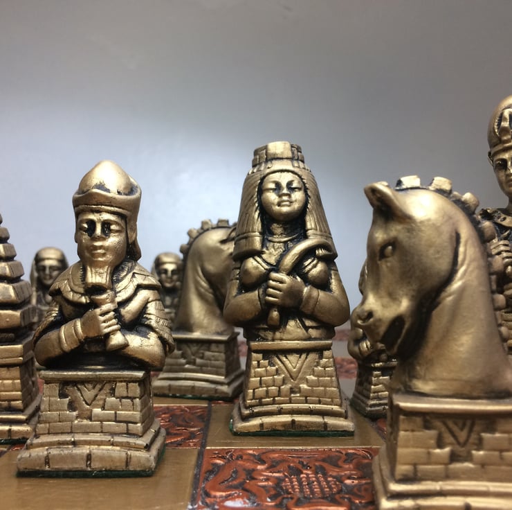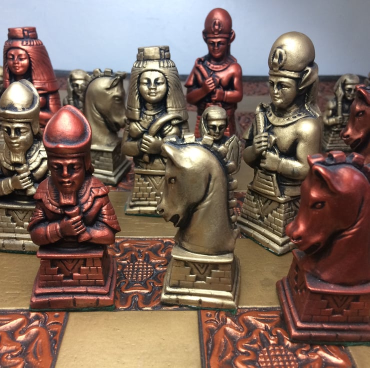 Egyptian Chess Set - Antique Copper and Gold Metallic Effect - Chess pieces only