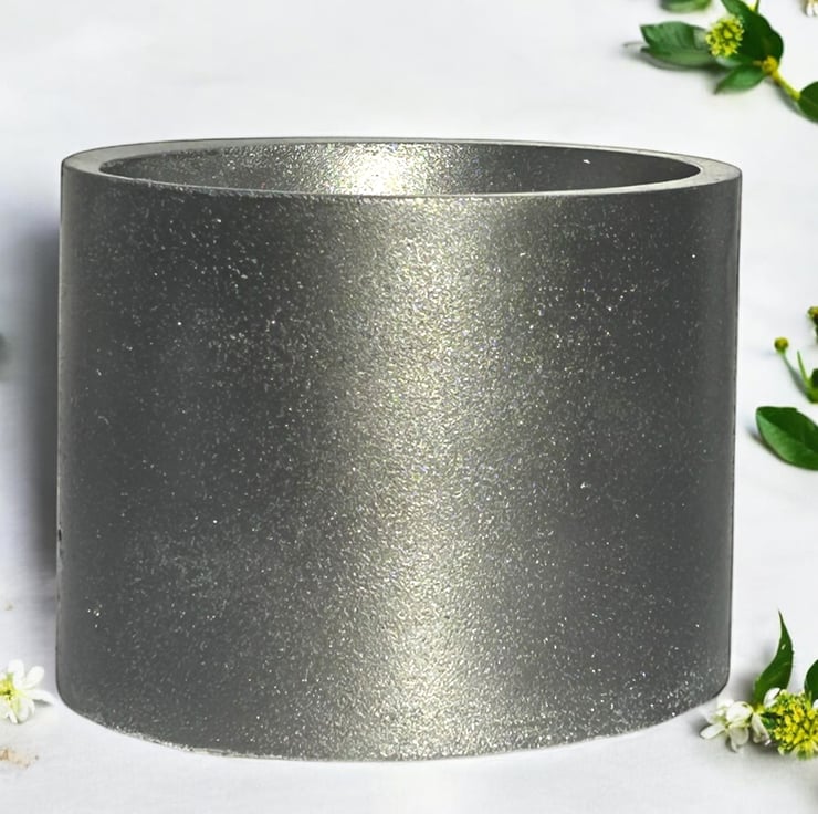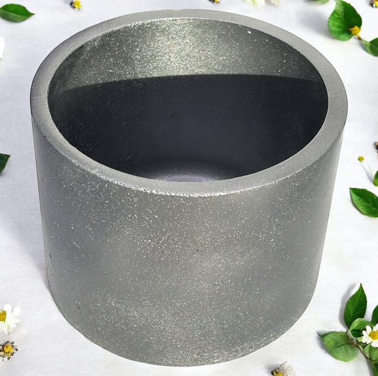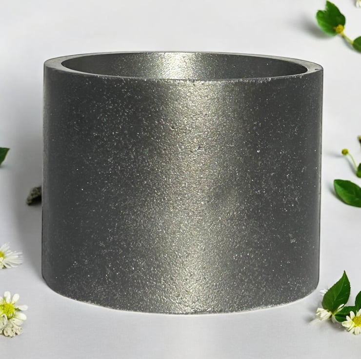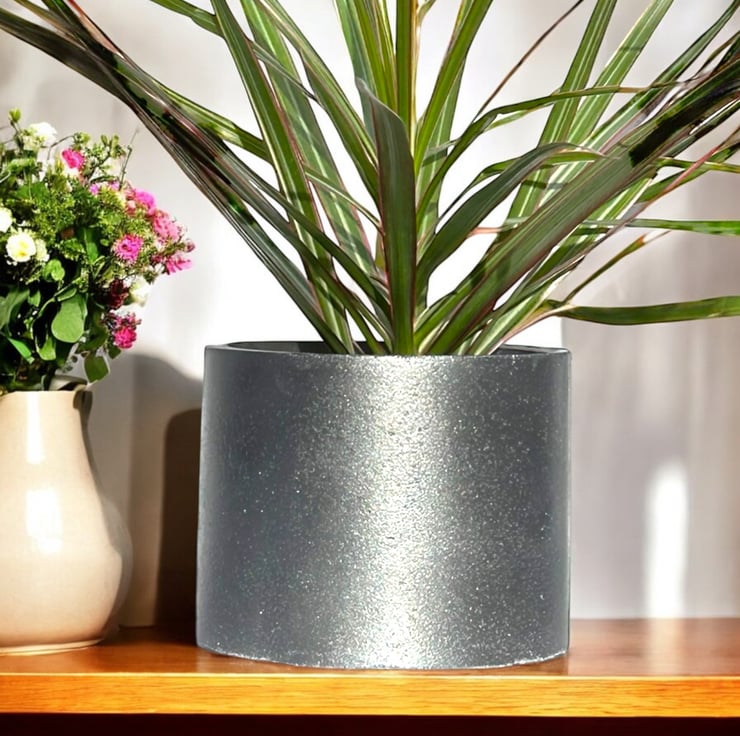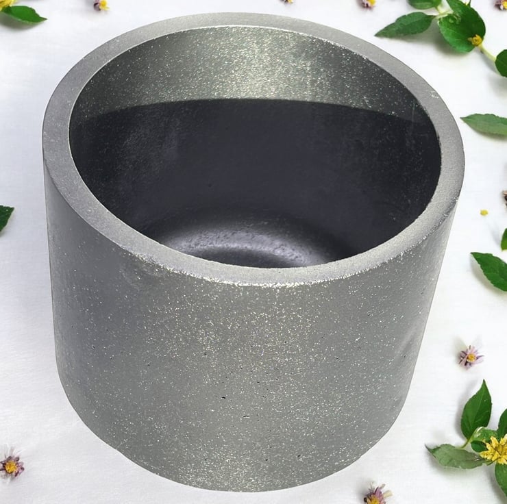 Introducing my beautiful handmade metallic silver large concrete plant pot. It's carefully crafted from premium Portland Limestone multicem cement, then painted with a metallic silver paint before being sealed with a natural stone sealer. It is perfect for displaying your favourite plants, not only is it visually appealing, but it's also durable and will complement any plant with its simple design and silver colour. Its neutral colour means it will fit with most interior design aesthetics making it ideal to gift or as a lovely practical treat for yourself.