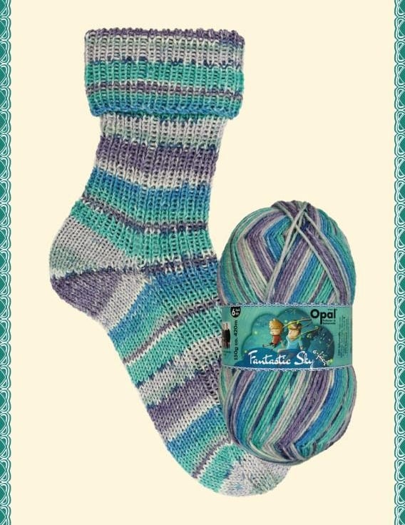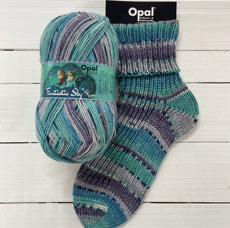 Opal is the original self patterning sock yarn manufacturer in Germany. Fantastic Sky released in autumn 2022 is a lovely 6 ply sock yarn collection with vibrant patterns in a lovely range of colours, interesting and quick to knit.