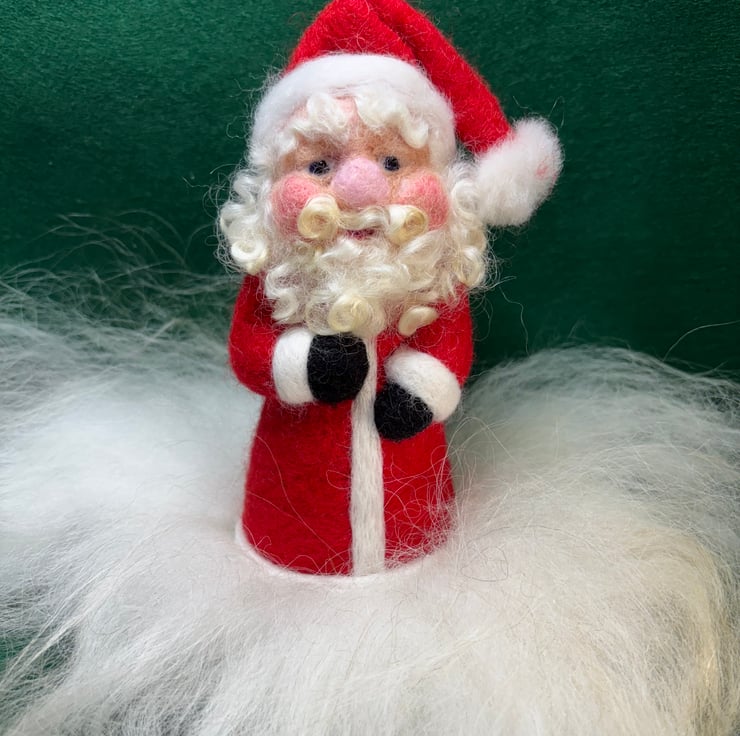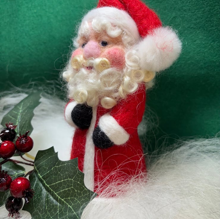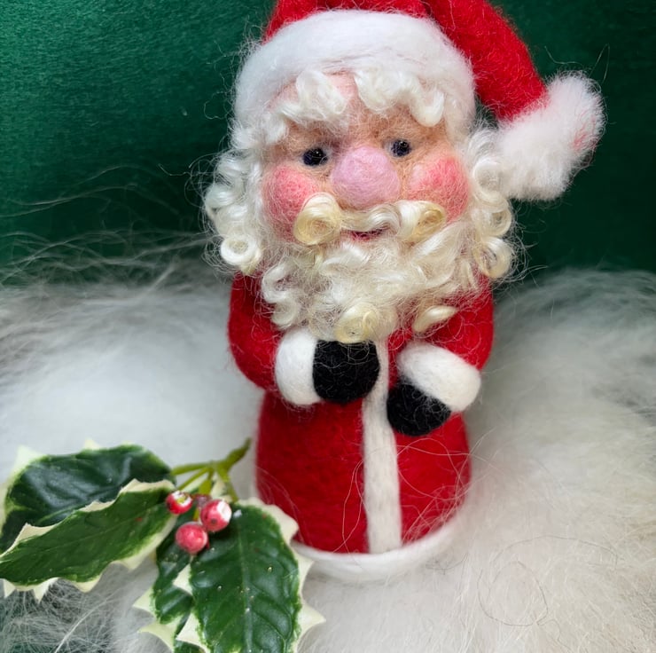 This is a needle felted Father Christmas about 6-7 inches high. He stands independently. They are unique creations due to being handmade. Not sold as a toy.