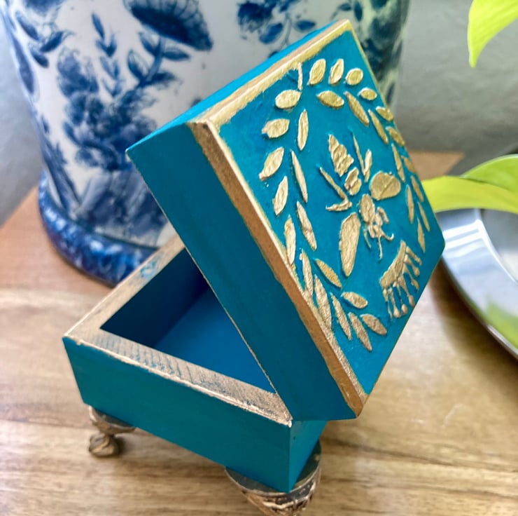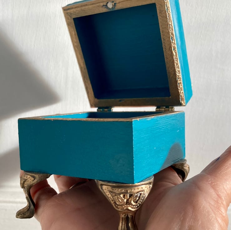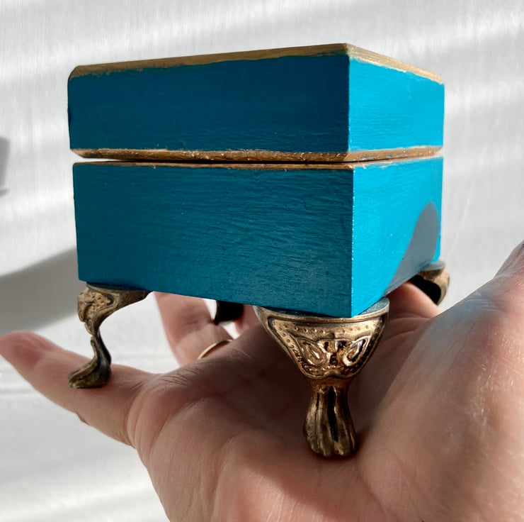 This box is made of wood and has been handpainted in a gorgeous colour, turquoise teal.