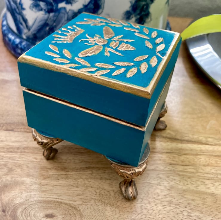 I have also added antique effect lions claw metal feet and used gold wax to highlight the feet