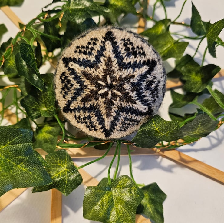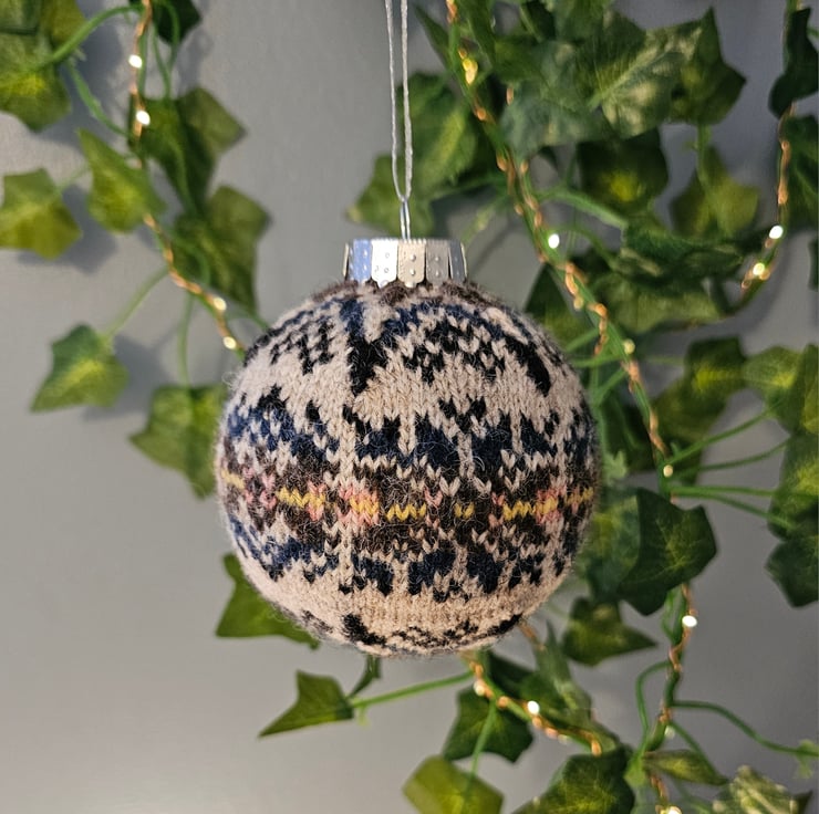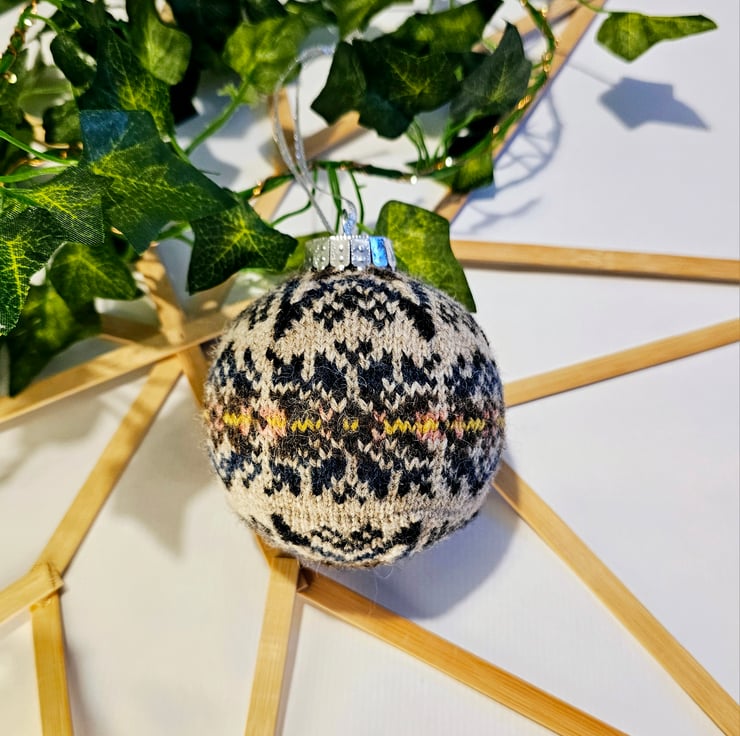 This Fair Isle bauble is my own design and is hand knit in 100% Shetland wool. Perfect to purchase as a treat for yourself, or as a gift for a loved one. To be hung on a Christmas tree or as part of other decorations around the house. Fair Isle can be used and displayed year round and not only at Christmas.
