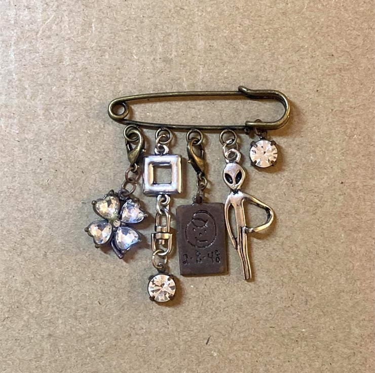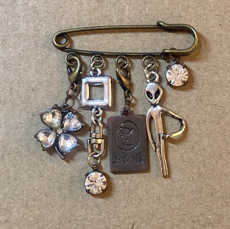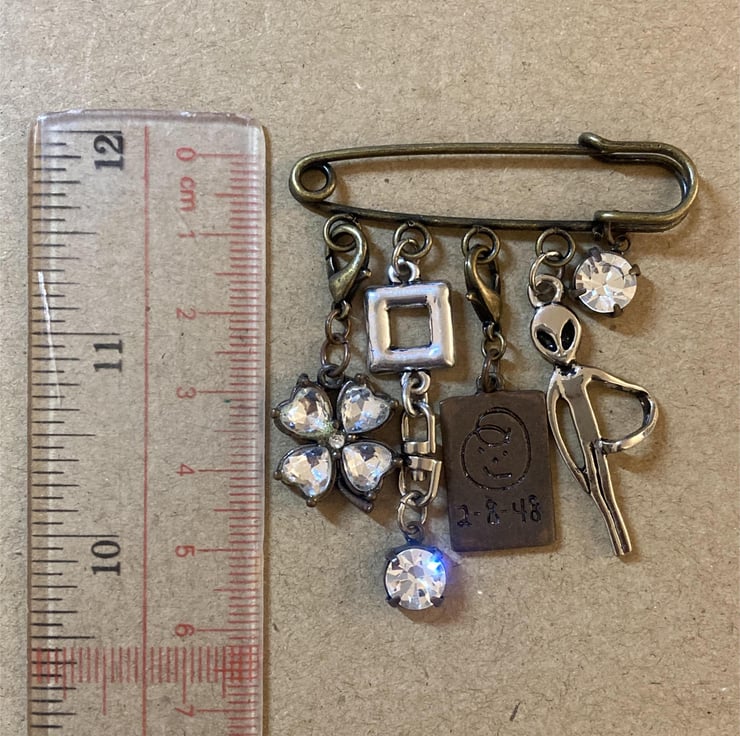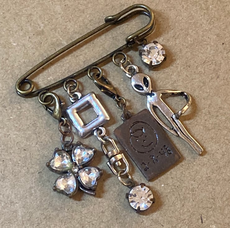 Upcycled Mini Rhinestone Flower And ET Charm Pin - Lapel Pin - Handmade