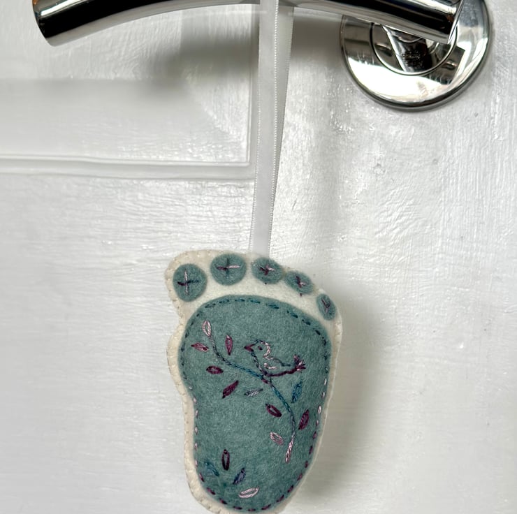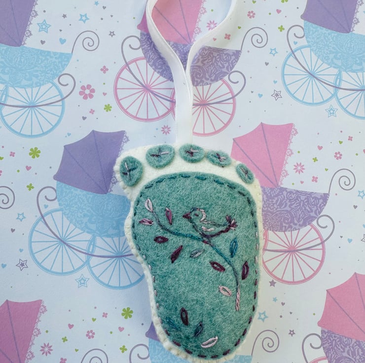 Hanging decoration of a baby footprint - new baby, new parents, christening,