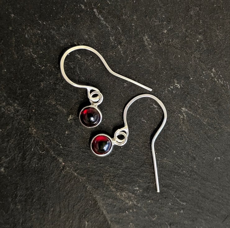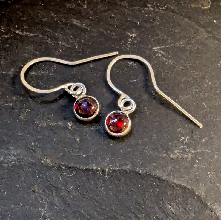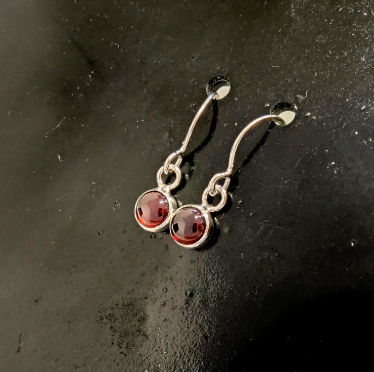 DANGLE Sterling Silver Garnet droplet earrings, Handmade Urban Jewellery