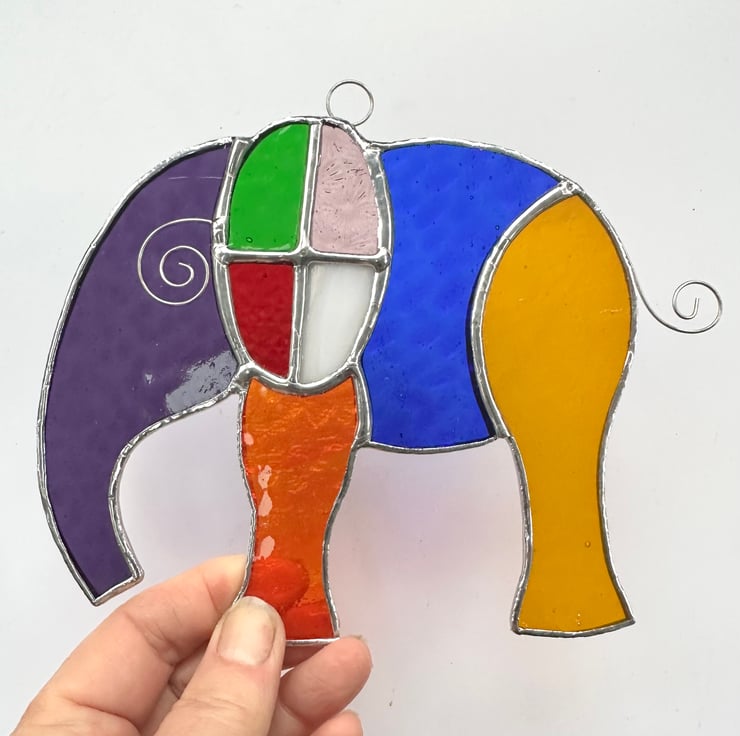 Elephant suncatcher made from beautiful stained glass by Carole’s Glass.