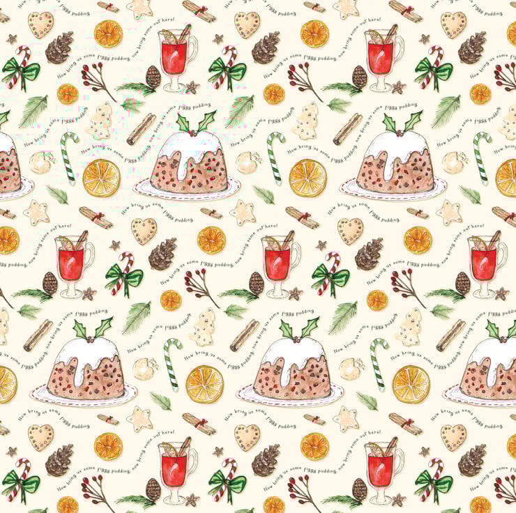 I'm a big lover of Christmas and I always make my own Christmas pudding - I wanted to create some festive illustrations that celebrated seasonal food and drink, including the eponymous 'figgy' or Christmas pudding.