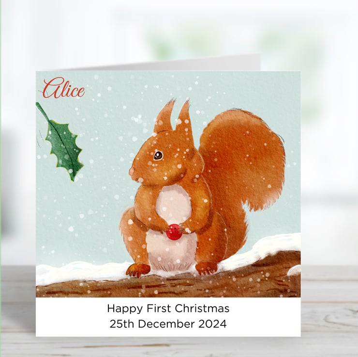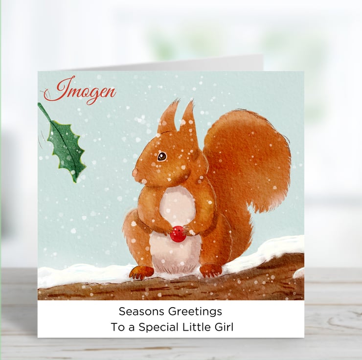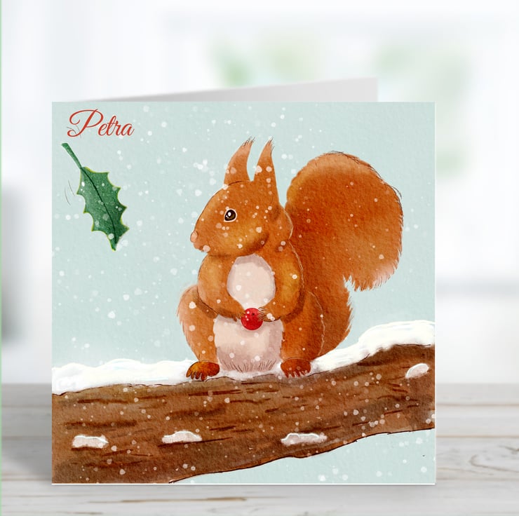 Add a touch of winter wonderland magic to a loved one's Christmas with this adorable card of a red squirrel in the snow.