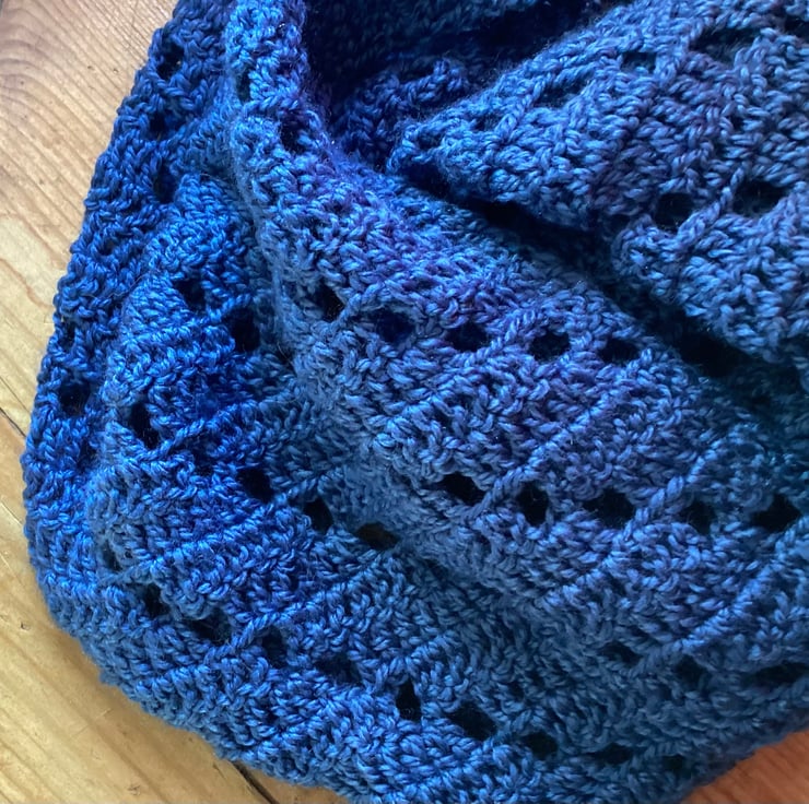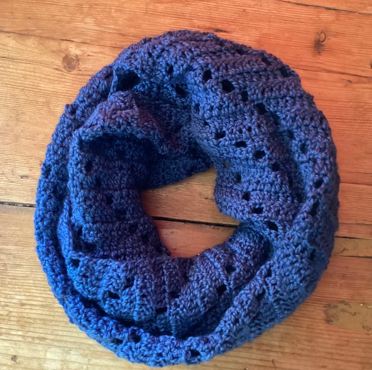 Lacy infinity scarves are crocheted in 4ply yarn.
