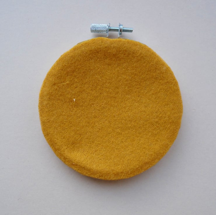 Materials: Wooden hoop, fabric, felt, glue, cord, cotton thread, and acrylic paints.