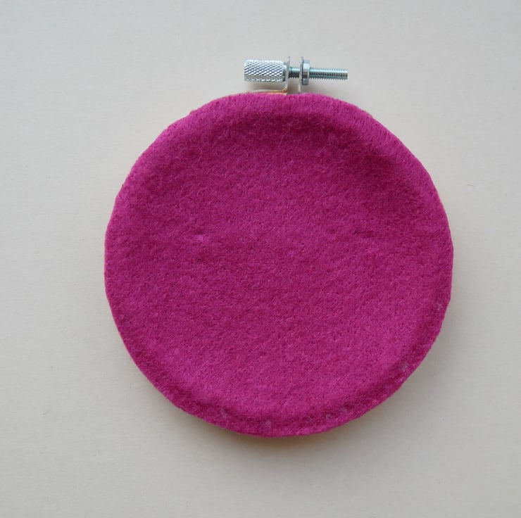 Materials: Wooden hoop, fabric, felt, glue, cord, cotton thread, and acrylic paints.