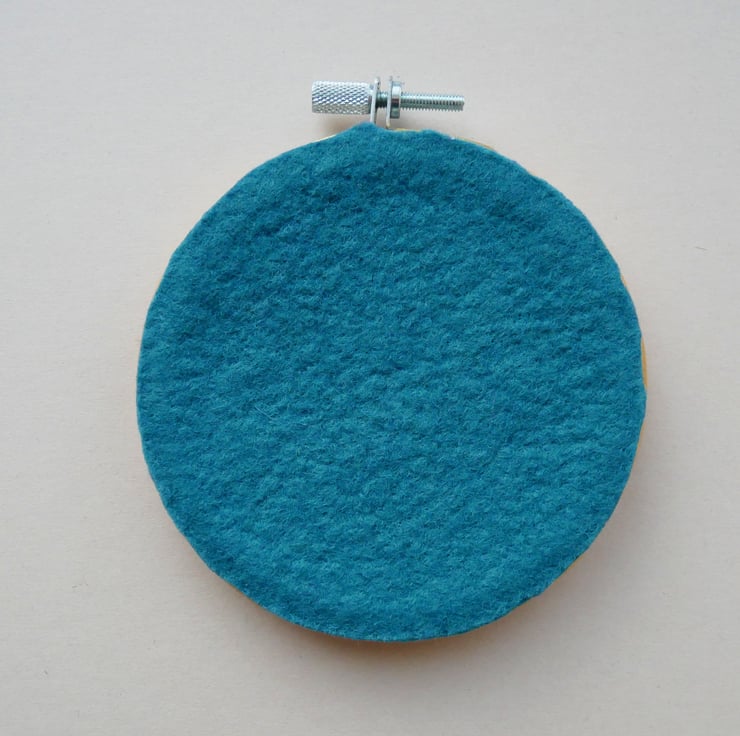 Materials: Wooden hoop, fabric, felt, glue, cord, cotton thread, and acrylic paints.
