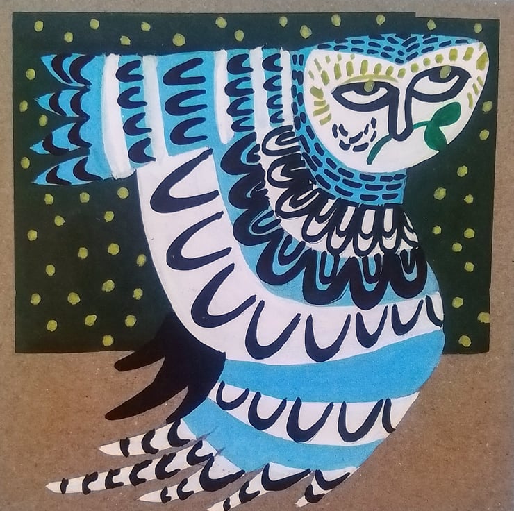 Painted originally in Gouache Paints onto a Kraft background, and now printed onto pristine white high-quality 350gsm cardstock.