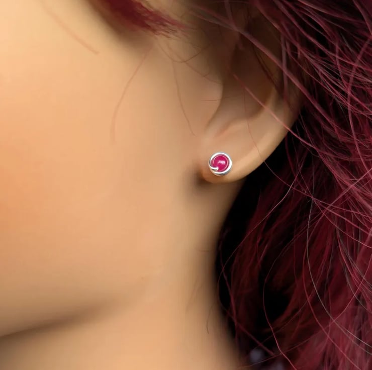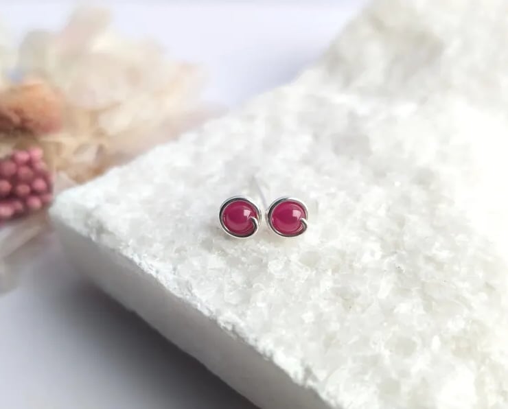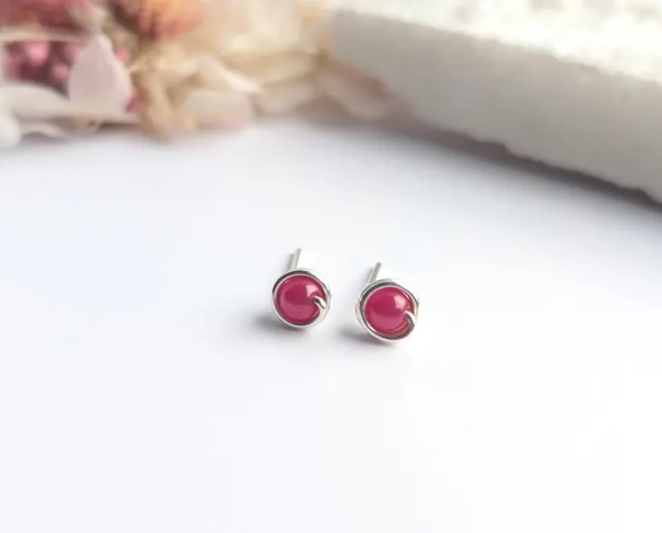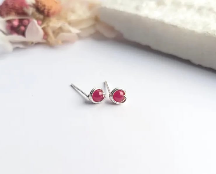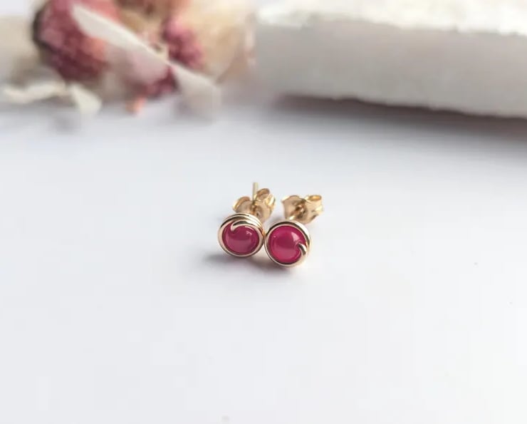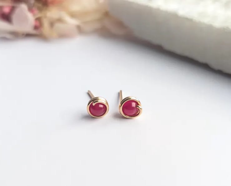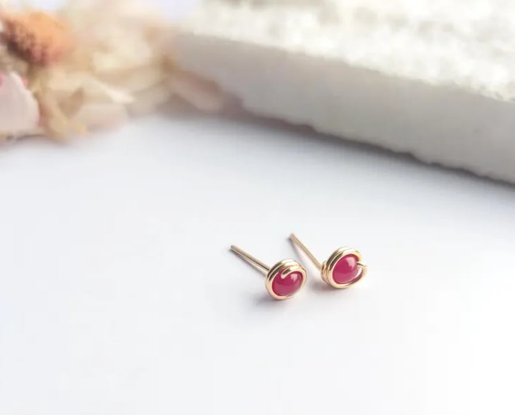 Delicate handmade ear studs featuring ruby natural gemstone beads. Designed with a minimalist touch, these are simple lightweight studs that are perfect for wearing everyday. Available in sterling Silver of 14K Gold Filled. These dainty earring studs would make a lovely gift for yourself or a loved one.