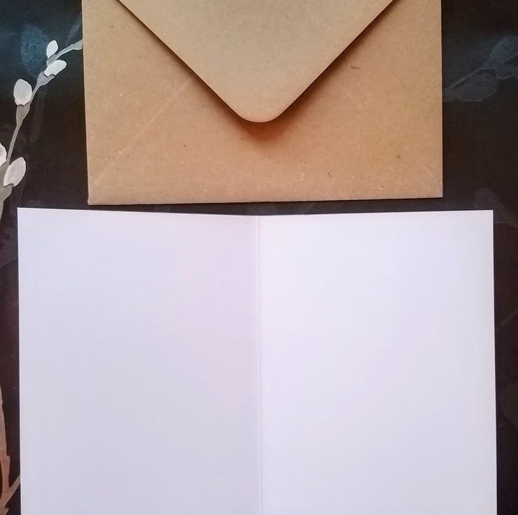 Printed on pristine white high-quality 350 gsm card-stock , supplied with a high- grade 240gsm Kraft paper recycled envelope.