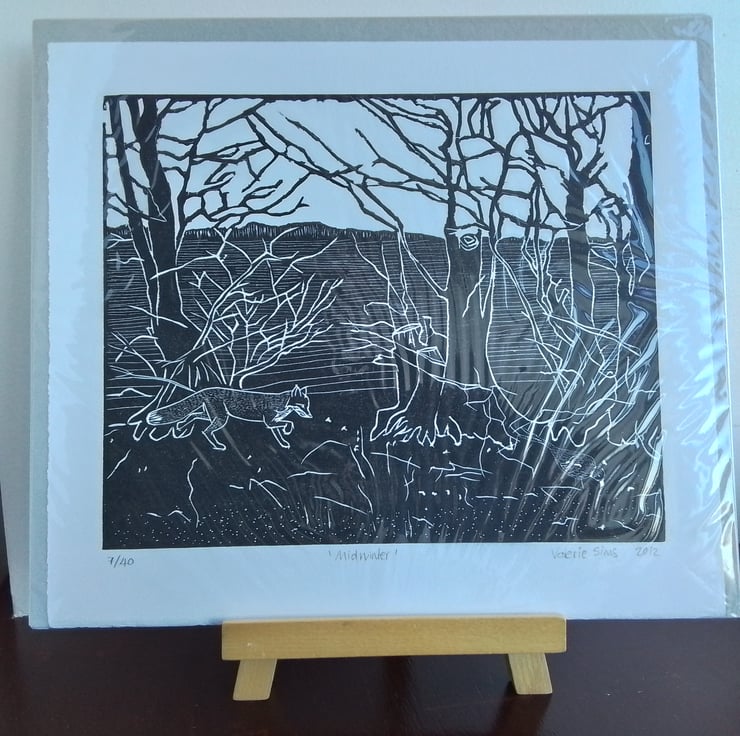 Woodcuts are sold unframed and sent in a card-backed clear protective sleeve, packaged with more cardboard