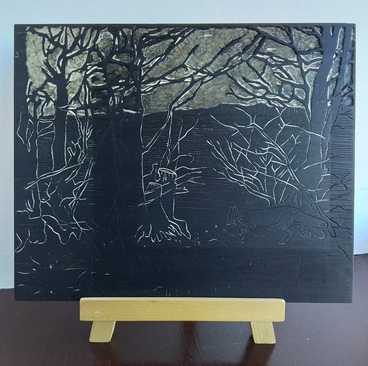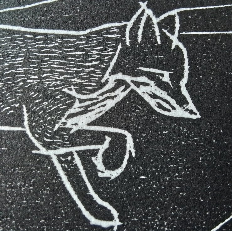 Hand-carved woodcut printed on 100% cotton rag soft-white Somerset Velvet 250gsm, signed, titled and dated 2012