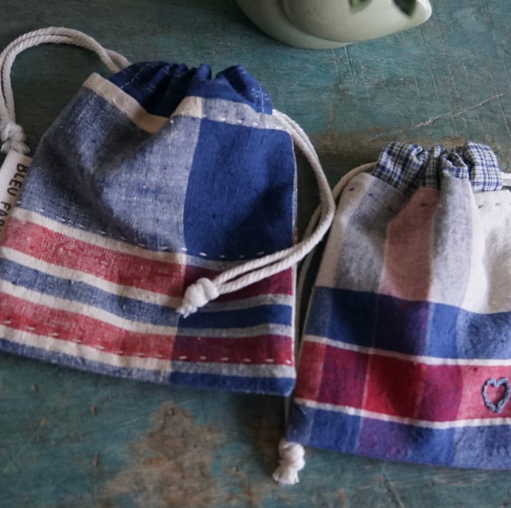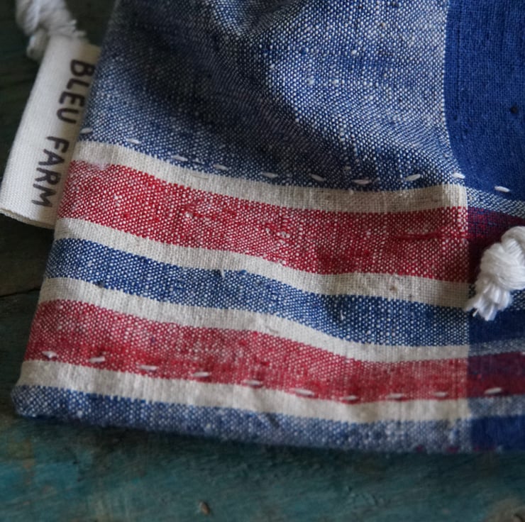 The inspiration for Bleu Farm items comes from a deep appreciation for vintage fabrics and the craftsmanship of rural village women who hand-wove these beautiful textiles. Each piece carries a sense of history and nostalgia, reminiscent of simpler times and childhood joy. My goal is bring these treasured fabrics into modern life, preserving their rustic charm while adding my own personal touch through slow stitching. Every item is not only practical but also a reflection of the beauty in imperfection and the joy of simple living.