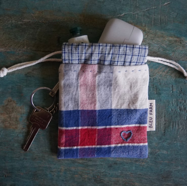 These charming small drawstring bags, made from vintage Chinese fabrics in calming blue tones, combine practicality with timeless beauty. Perfect for storing everyday essentials like earpods, keys or small trinkets, they are lightweight and easy to carry. Measuring with the size 12cmW x 14cmH, each bag is fully lined, handmade with care and love, showcasing the unique character of homespun fabrics and promoting sustainable practices. Their understated elegance and thoughtful craftsmanship make them meaningful gifts for those who appreciate simplicity and eco-conscious living.