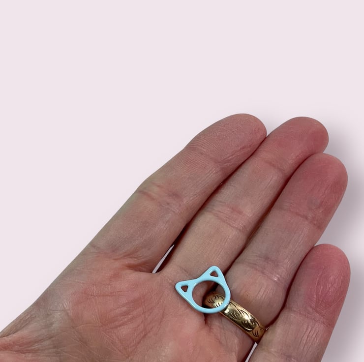 Stitch markers in a cat shape for knitting, enamelled colourful metal
