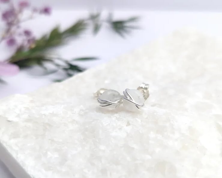 Delicate handmade ear studs featuring a moonstone gemstone bead. Designed with a minimalist touch, these are simple lightweight studs that are perfect for wearing everyday. Available in sterling Silver of 14K Gold Filled. These dainty earring studs would make a lovely gift for yourself or a loved one.