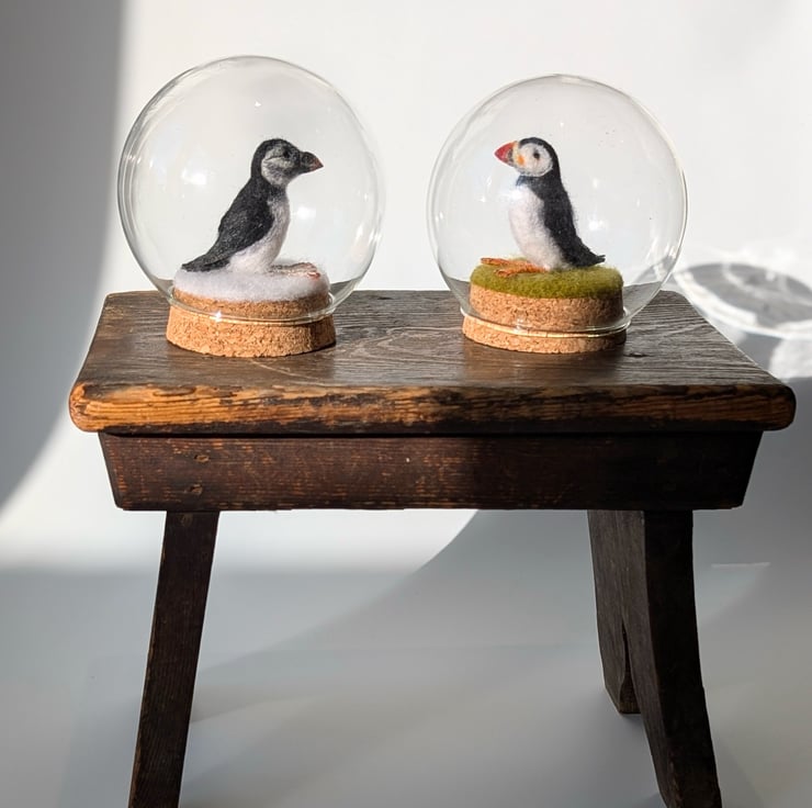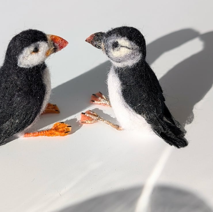 This Atlantic Puffin wool sculpture is to scale with all my other mini-birds noted as being in 1:4 scale.