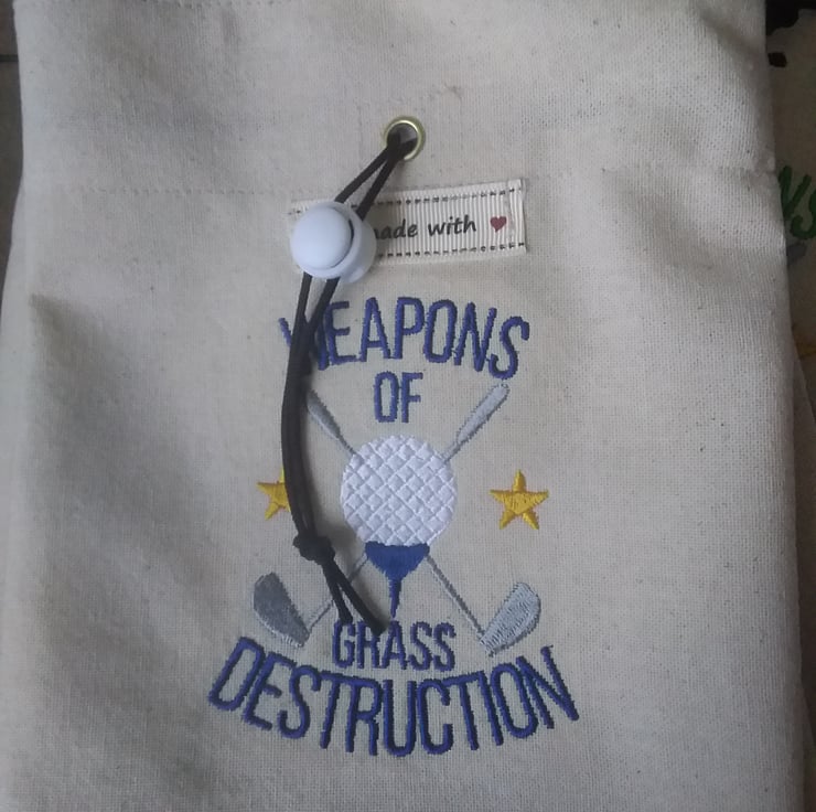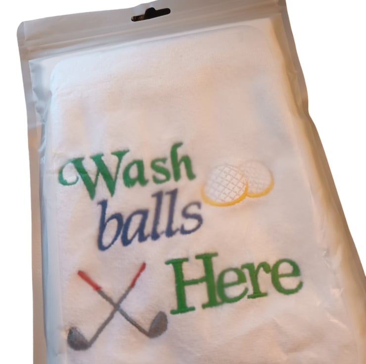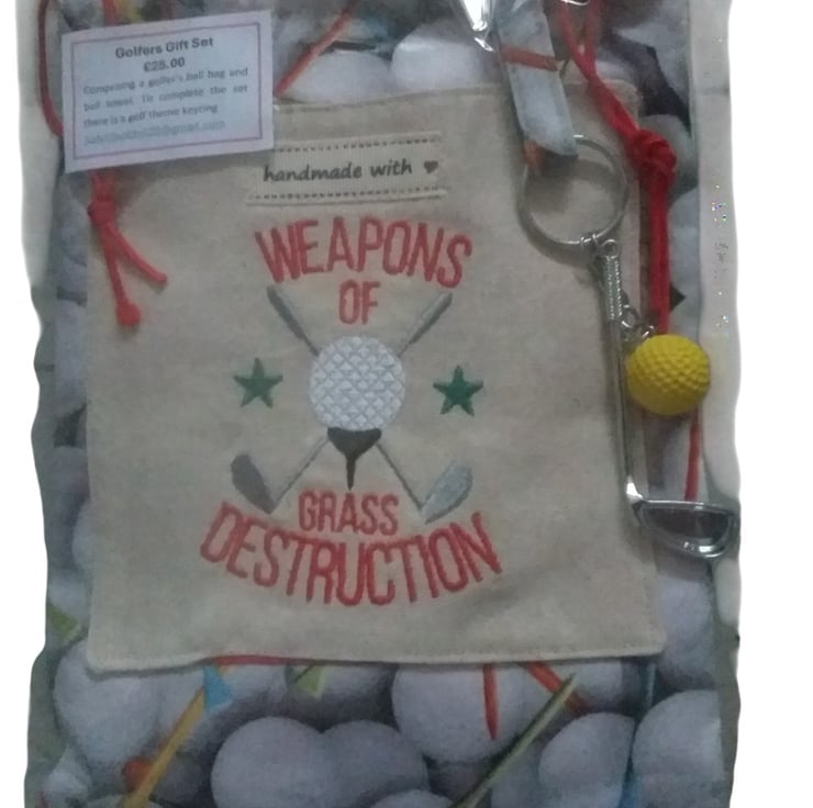 A unique set that would delight any golfer. Comprising a machine embroidered golf ball bag with drawstring and an embroidered golf towel. The bag is fully lined and also comes with a golf keyring. Can be washed at 30°.