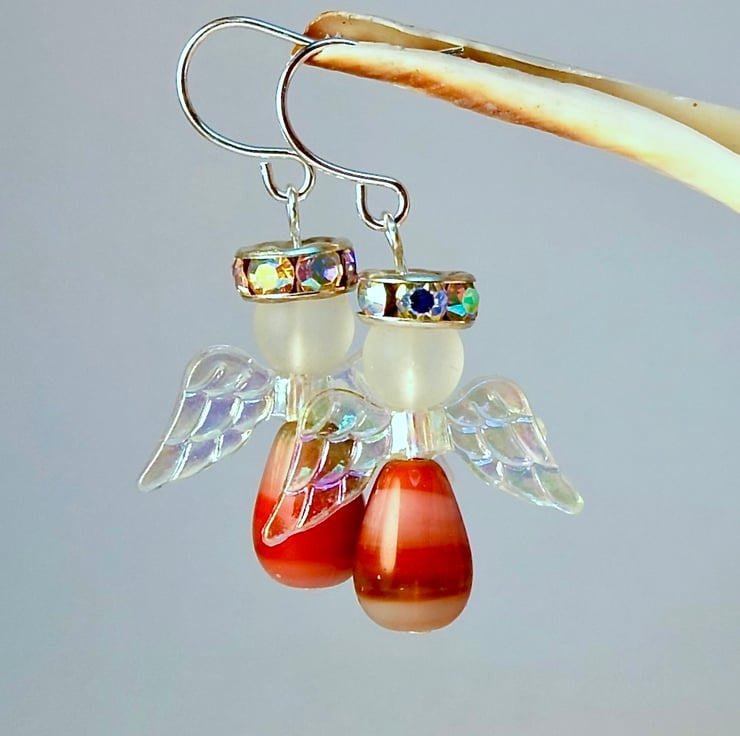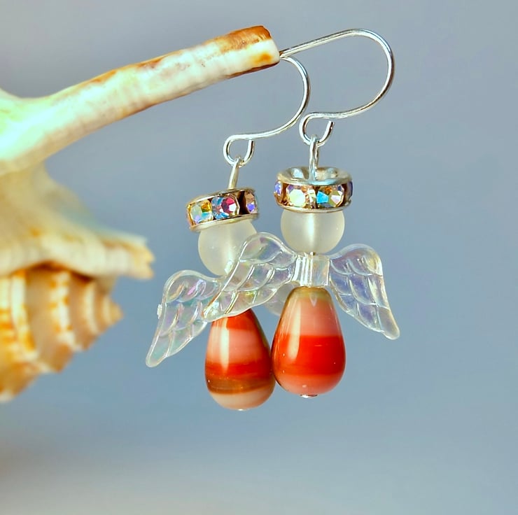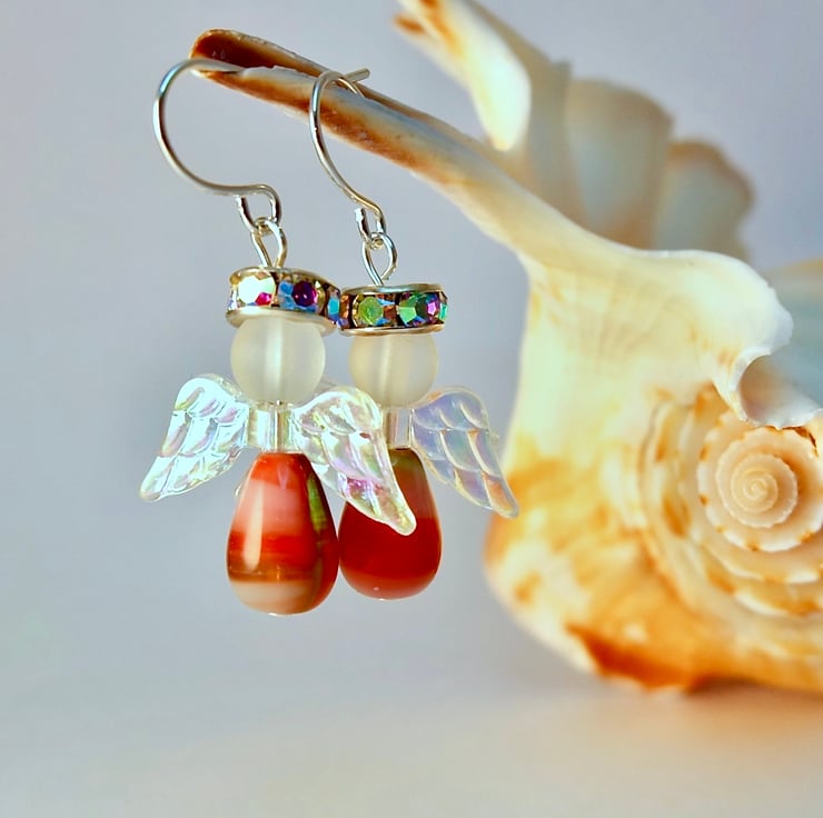 Christmas Angel Earrings Glass Drop, Stocking Filler, Secret Santa, Gift For Her