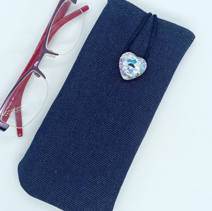 It has a sparkly heart button and loop closure to keep your glasses secure