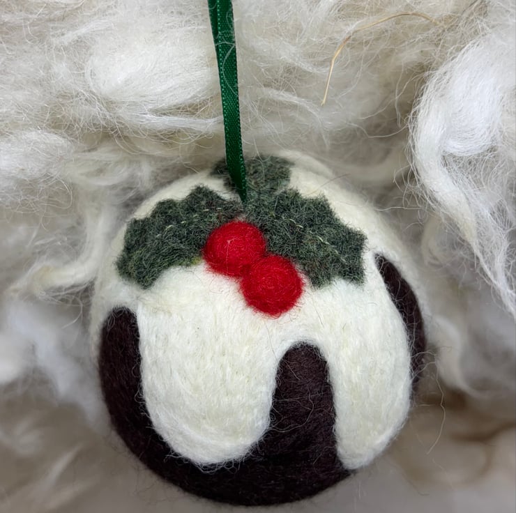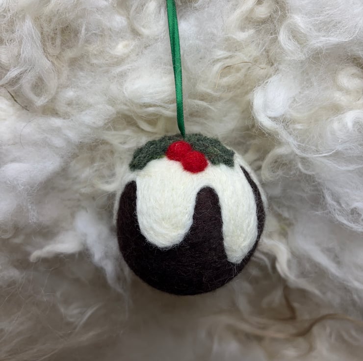 Love it or hate it, the Christmas Pudding symbolises Christmas. So hang this one on your tree. It has a solid wool core and the colour is needle felted to that. The Holly leaves are cut from a piece of my handmade felt.
