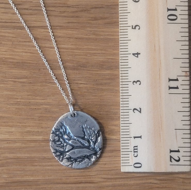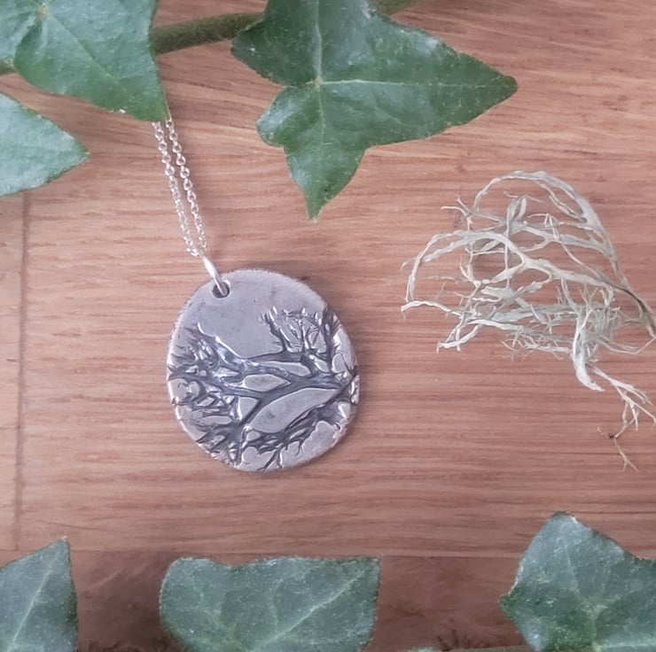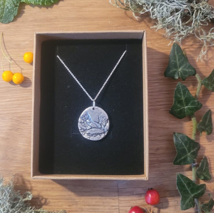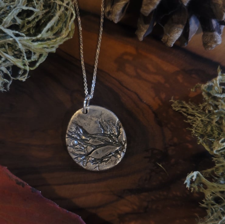 This silver necklace was made from lichen foraged from the woods close to my home, on the edge of my village in Berkshire. The wild, twisted nature of lichen creates a wonderfully abstract-looking pendant.
