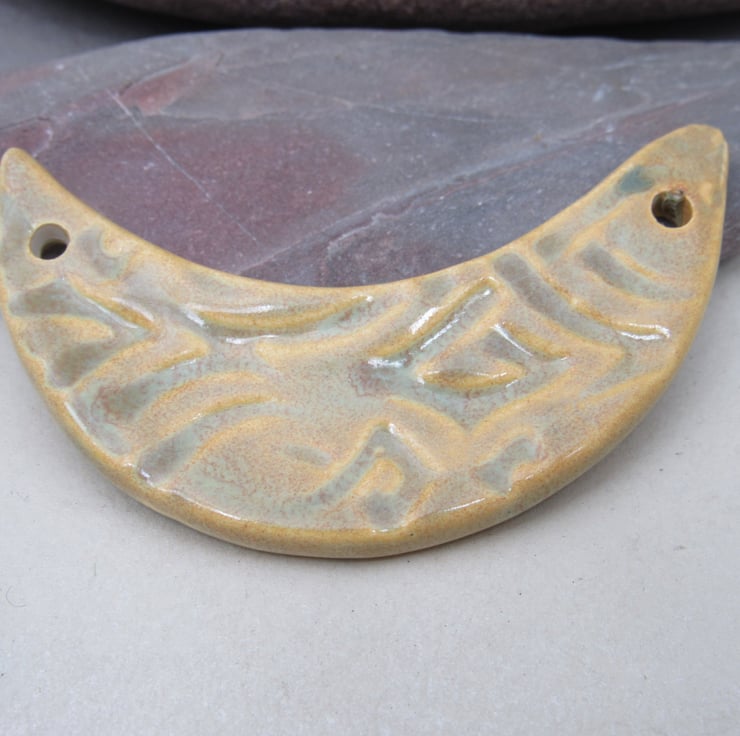 Old Gold Celtic Ceramic Crescent Bib Pendant