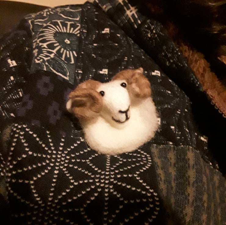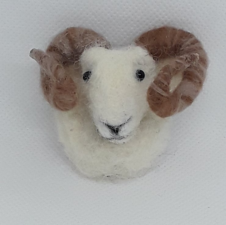 A Rams head brooch made from Wensleydale wool, has the classic horns covering the side of his face, would look great worn on a coat, blouse, shirt or hat.