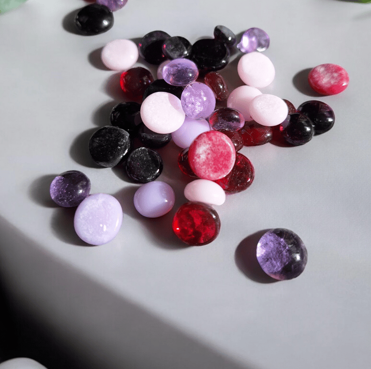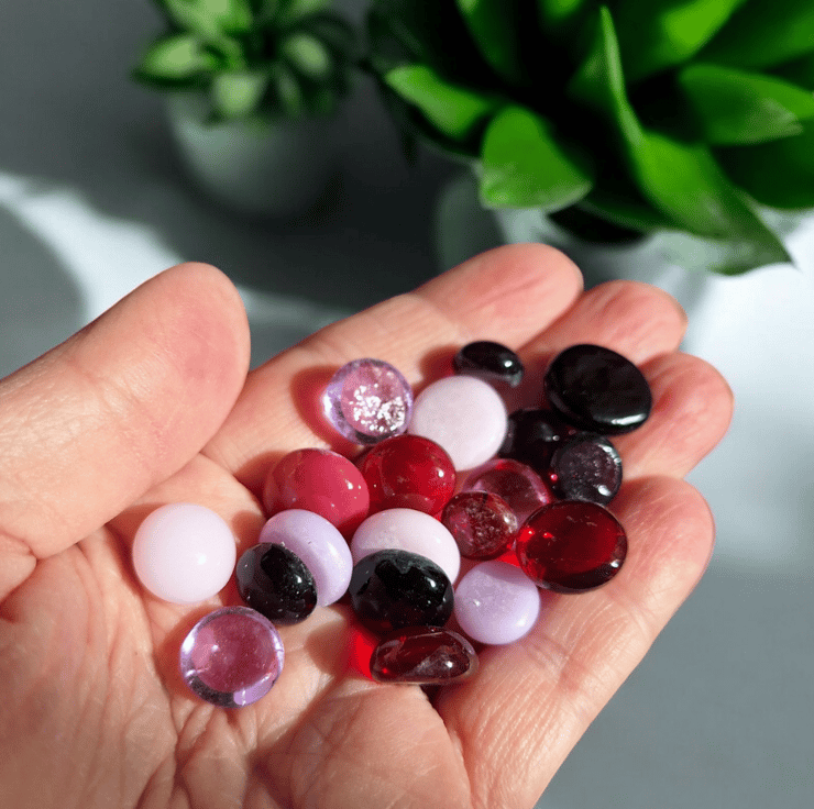 Add vibrant colour to your craft projects with these handmade fused glass dots and cabochons. This 50g lucky dip selection features a stunning mix of purples and pinks, made from premium Bullseye Glass with Coe 90, perfect for mosaics, jewellery making, and other creative crafts. you will receive approximately 45 beads. Each piece is uniquely handmade in my home studio, ensuring a high-quality and one-of-a-kind addition to your supplies.
