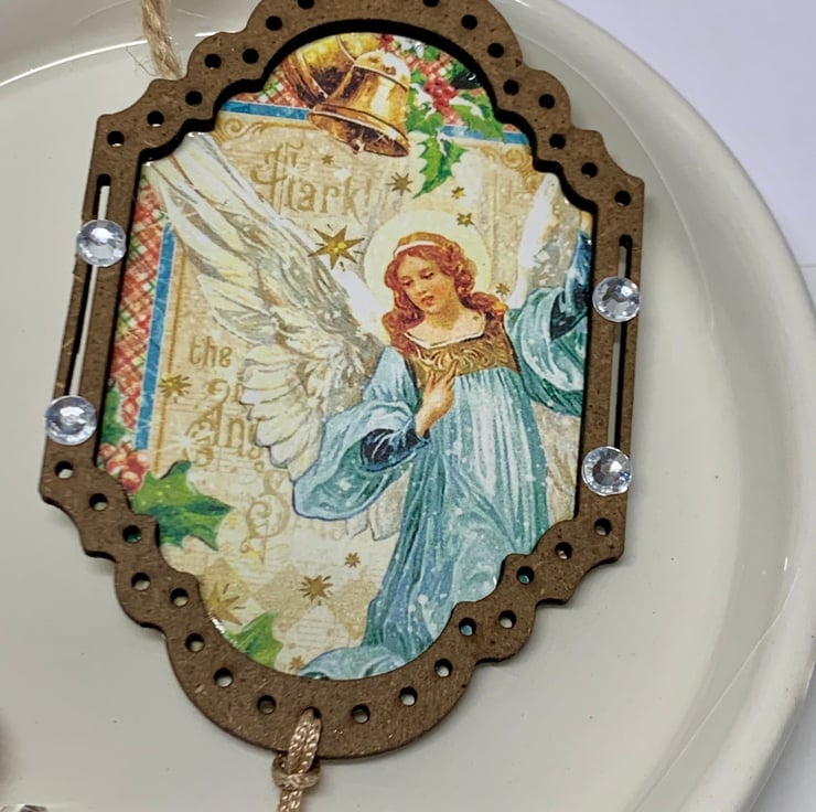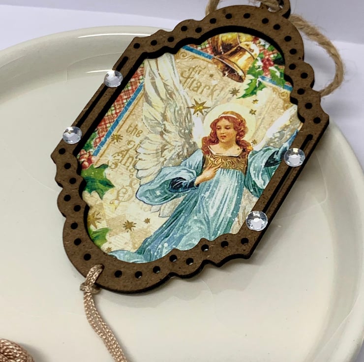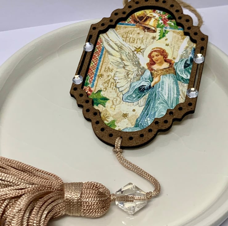 Do you or someone you know believe in Angels? If you do this Handmade One of a Kind hanging decoration depicting a framed Angel would make a lovely gift for someone or a treat for yourself. I have given this beautiful piece a Vintage feel from the print I have chosen, to the frame and tassel. To keep that Vintage feel going I've added a handmade extra long tassel in a neutral colour with clear acrylic bead. To add a little sparkle I've used clear rhinestones to the frame. Comes ready to hang.