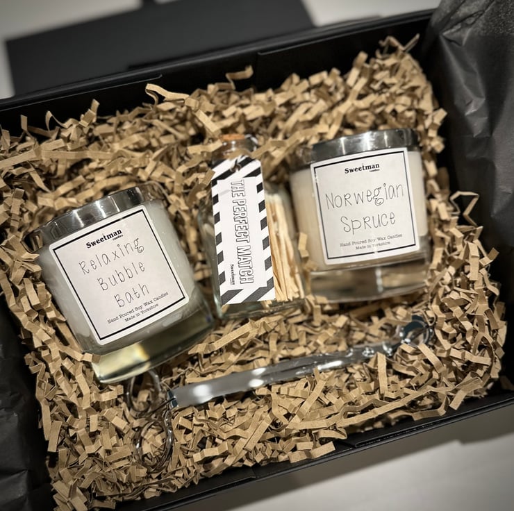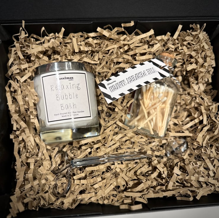 Choose either 1 or 2 of our Large candles along with a glass jar of black or white matches and a silver wick trimmer. All wrapped in a magnetic black box and finished off with a black and white ribbon trim.