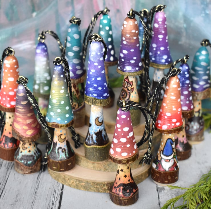 These cute little rustic hanging mushrooms are lovely as gifts, they're all designed by hand and no two are a like.