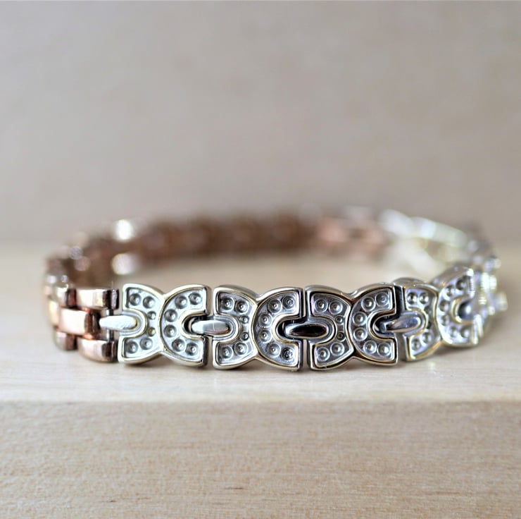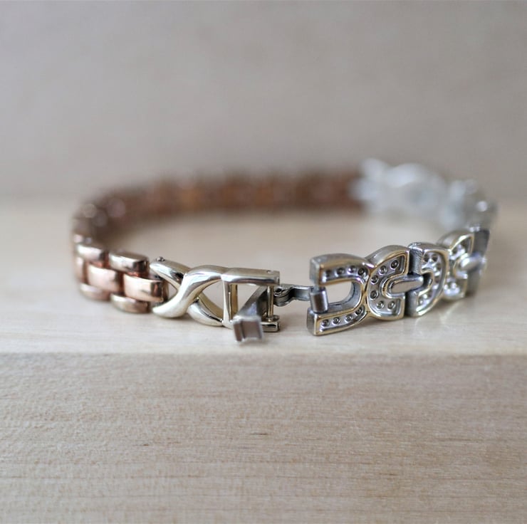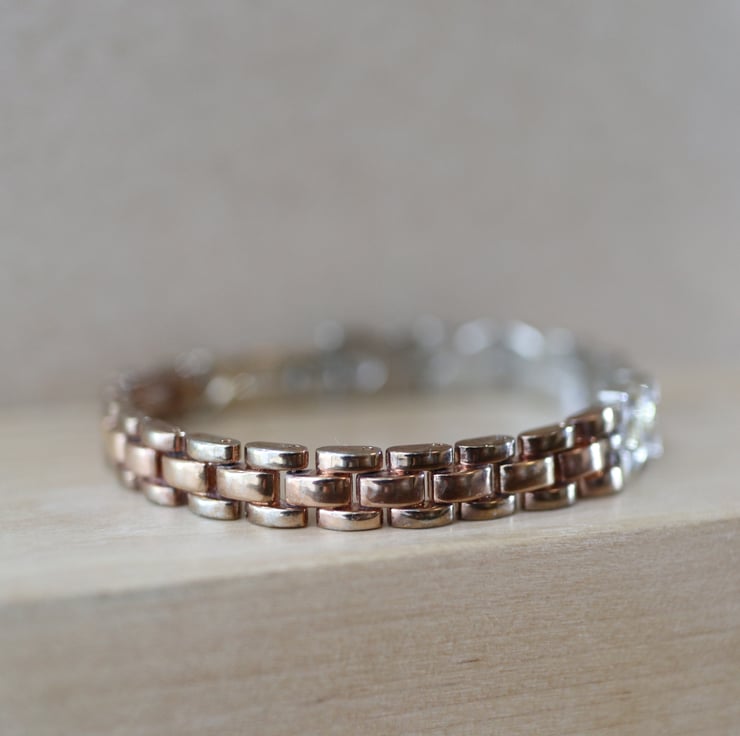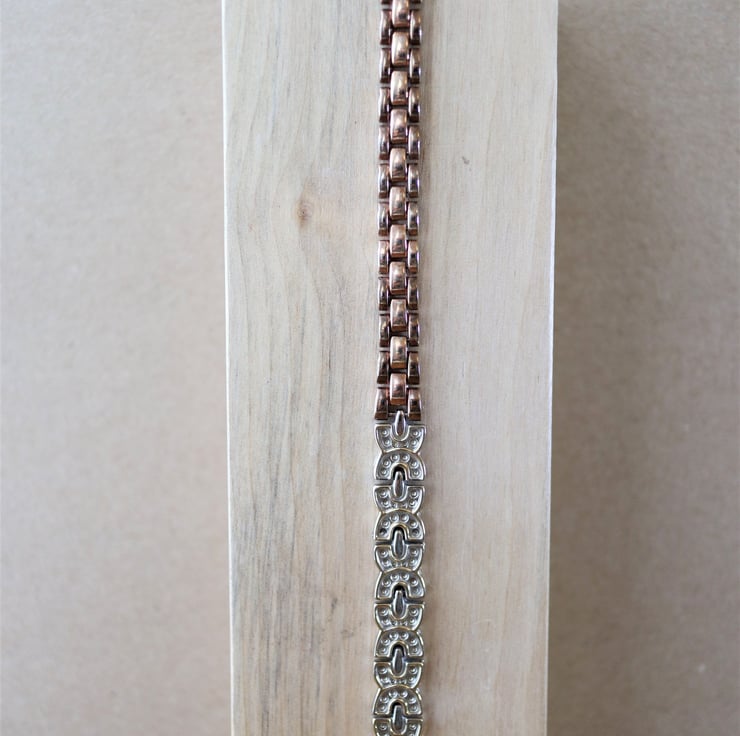 Rose gold color plated - up-cycled stainless steel bracelet - one of a kind jewelry