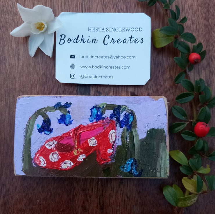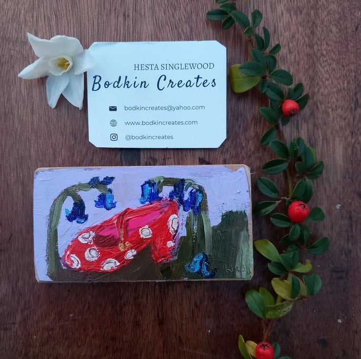 Oh so tiny, very sweet would even work in a dolls house. Oil painting on reclaimed wood. Hook on the back and signed. One off originals. 8cm in length just 4 cm tall. I with wrap it mindfully and beautifully for you x