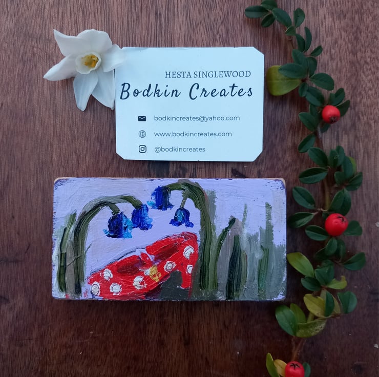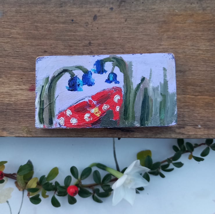 Oh so tiny, very sweet would even work in a dolls house. Oil painting on reclaimed wood which I sand. Hook on the back and signed. One off originals. I will wrap it mindfully and beautifully for you x ps did I say its just4 cm tall and 8cm length.