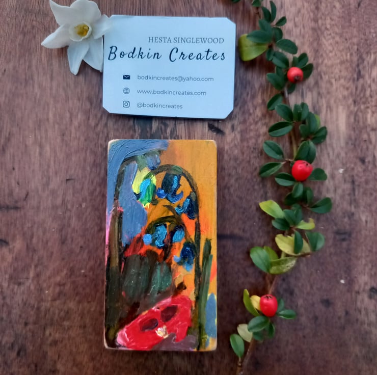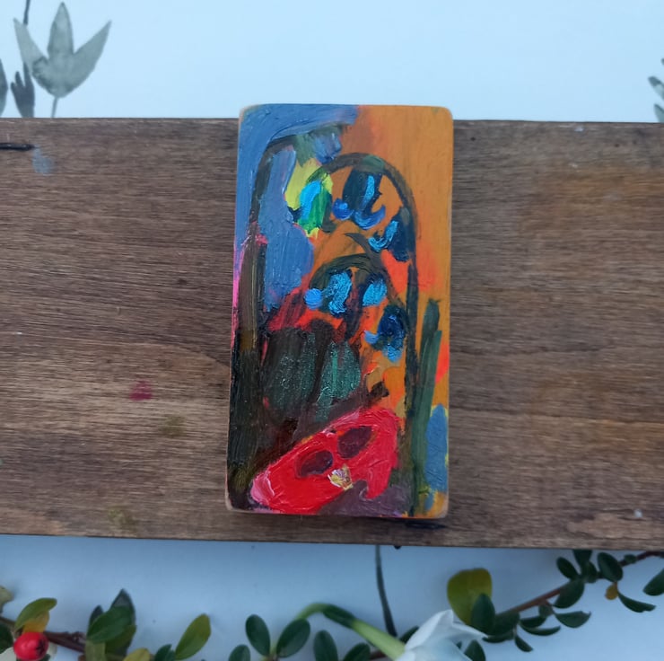 Oh so tiny, very sweet would even work in a dolls house. Oil painting on reclaimed wood which I sand. Hook on the back and signed. One off originals. I will wrape the mindfully and beautifully for you x