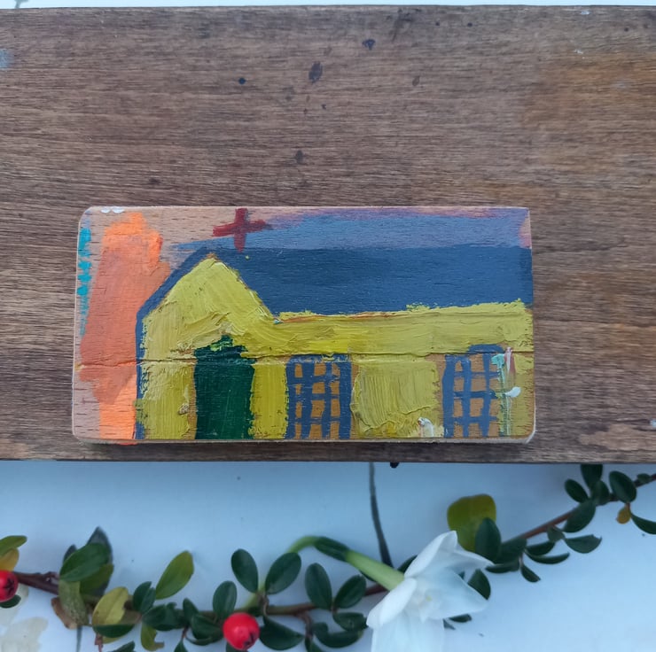 Oh so tiny, very sweet would even work in a dolls house. Oil painting on reclaimed wood which I sand. Hook on the back and signed. One off originals. I will wrape them mindfully and beautifully for you x