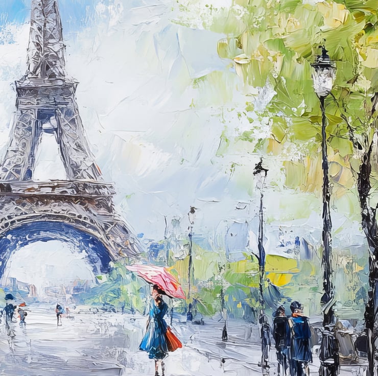 Theme: Paris, France, Travel, Romance, Cityscape, Spring, Scenic, Europe, Urban, Colorful, Stroll, Elegant, Architecture, Impressionism, Tower, Tourist, Iconic, Nature, Umbrella, Street, Charming