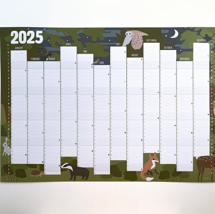 A new design for 2025, this is a larger size A2 planner featuring my original illustrations of woodland animals.